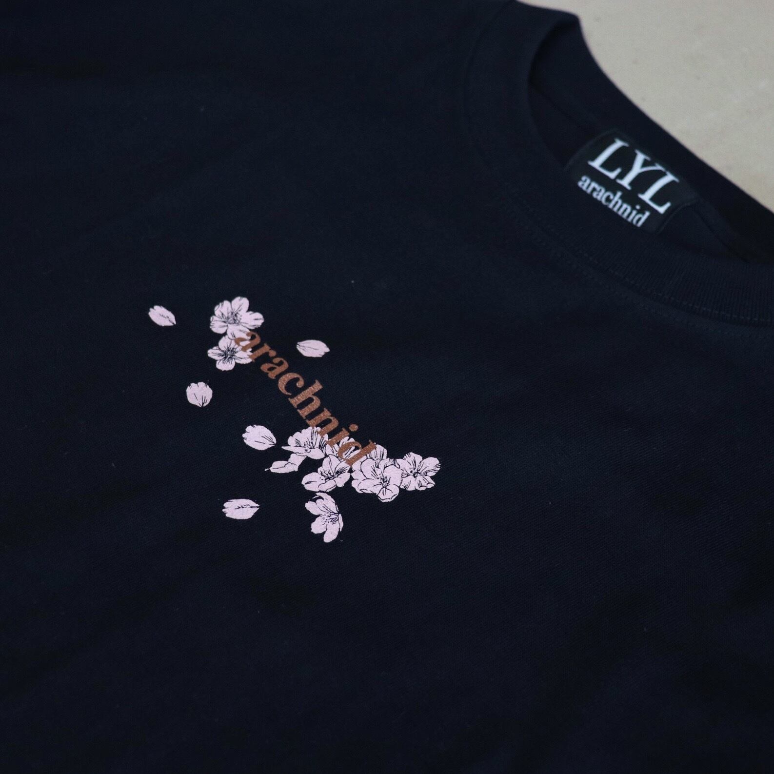 LYL arachnid " BIG LOGO 桜 " ロンT ブラック