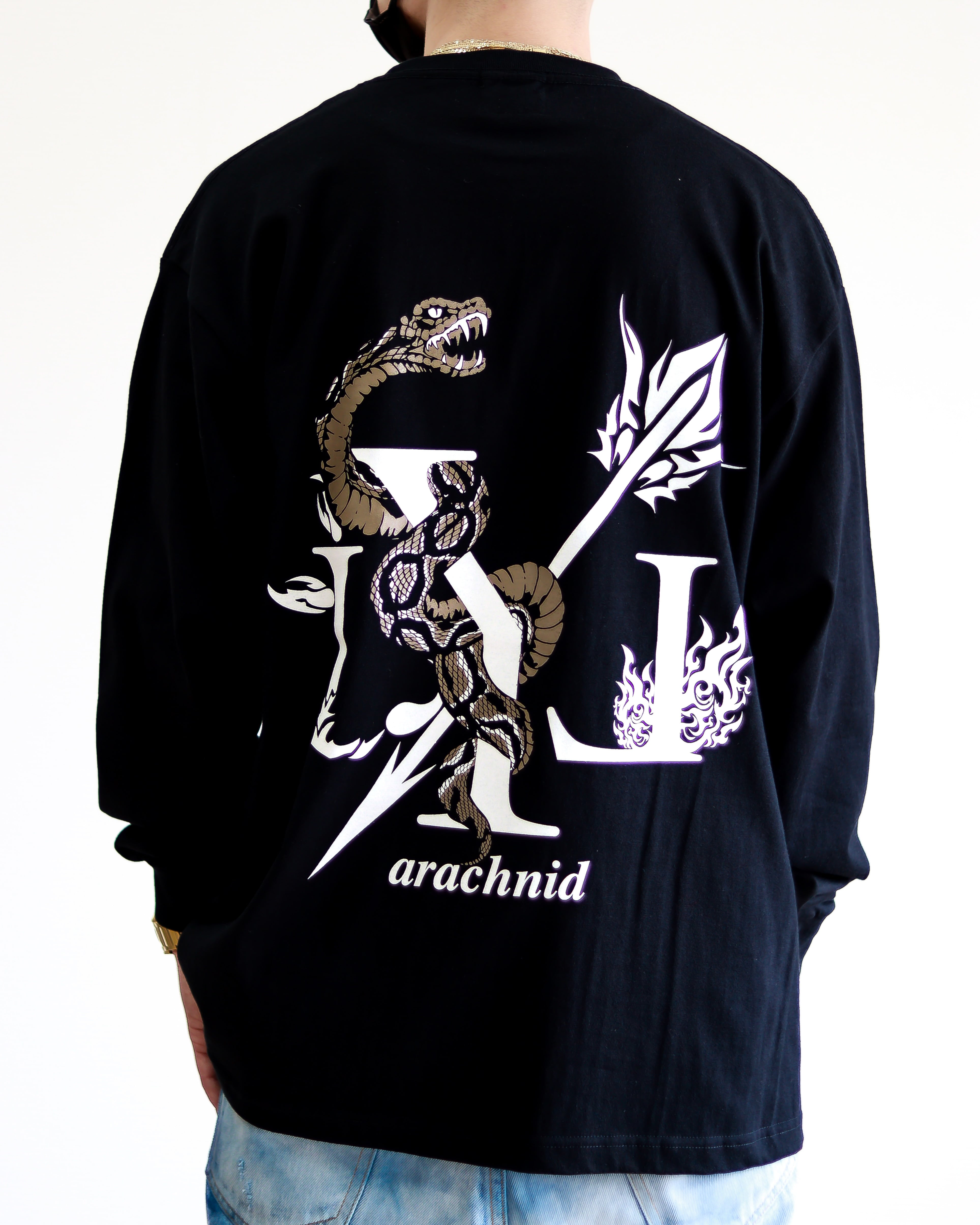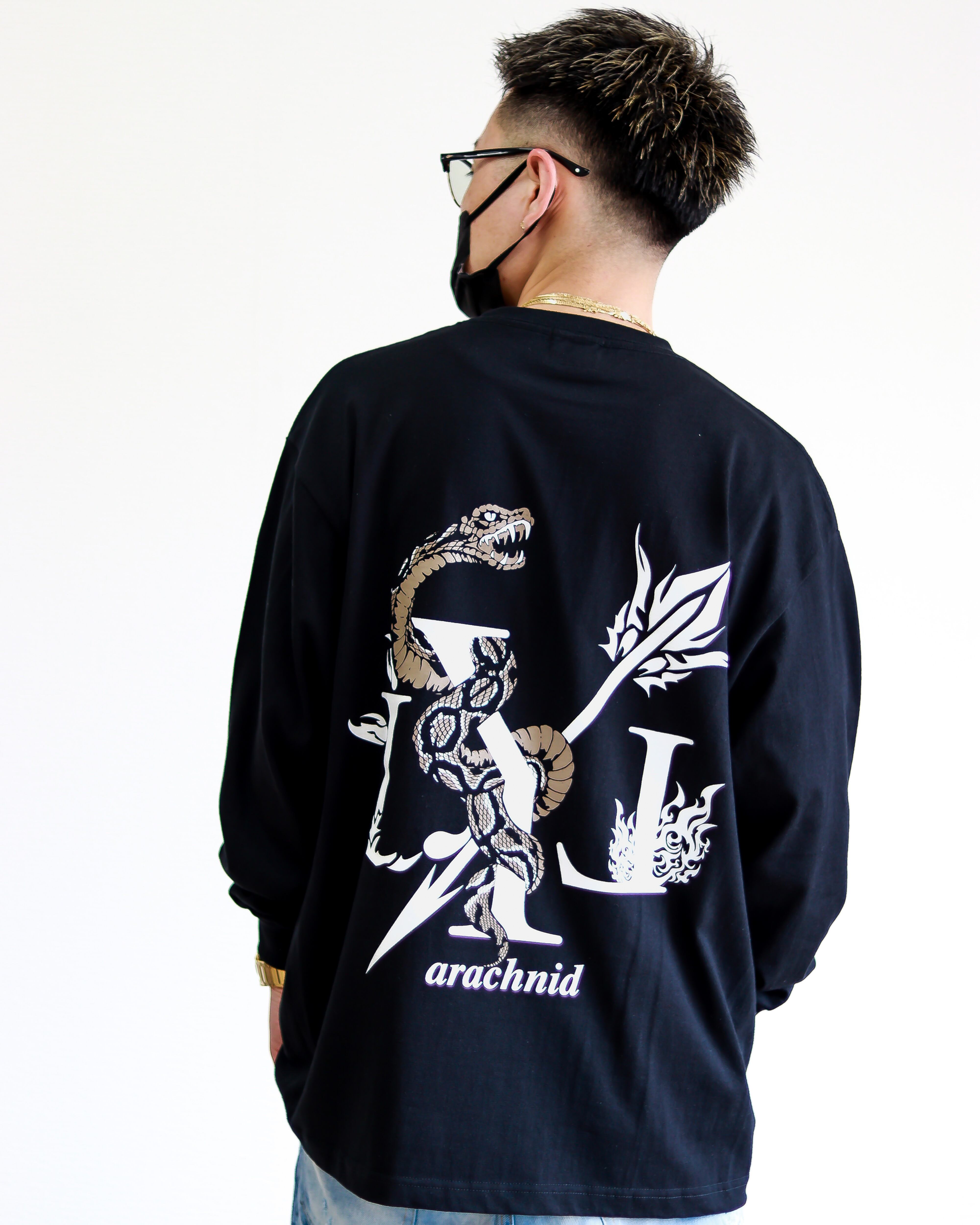 LYL arachnid "BIG LOGO SNAKE" ロンT ブラック